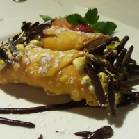 Sicilian fried pastry shell filled with a sweet ricotta cream dipped in chocolate & pistachio bits
