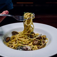 Spaghetti with clams in a garlic, chili & white wine sauce