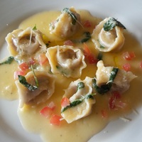 Handmade tortellini stuffed with porcini, button mushroom, smoked duck, mascarpone & parmesan cheese with a fresh sage butter & truffle oil