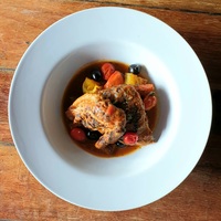 Free range chicken braised with olive, capers, onion & tomato served with roasted vegetables