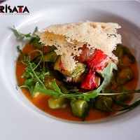 Spinach gnocchi with vegetables timbale in tomato cheese butter sauce