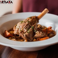 Wood fired oven braised lamb shank with rosemary, thyme & red wine served with mashed potato & vegetables