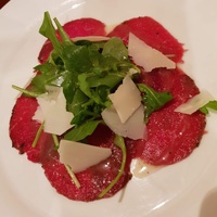 Marinated thinly sliced beef with wild rocket, shaved parmesan, Maldon sea salt & olive oil