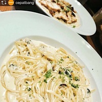 Flat pasta with scallop, wild porcini & shitake mushroom in a cream sauce