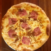 Smoked turkey ham, gorgonzola, caramelised onion, mozzarella & cream